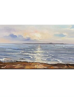 Pintura a óleo pintada à mão arte da parede moderna céu e mar paisagem abstrata decoração para casa decoração lona enrolada sem moldura não esticada