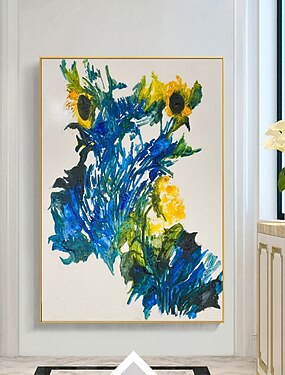 Pintura a óleo pintada à mão arte da parede moda moderna flor azul decoração para casa decoração lona enrolada sem moldura não esticada