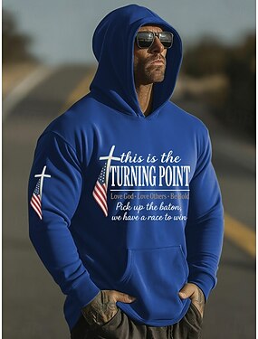 Homens Cruz Bandeira americana Moletom Moletom com capuz Moletom casual Moda Diário Férias Casual Vintage retrô Com Capuz Férias Streetwear Festival Azul Preto Branco Vermelho Verde Estampado Outono