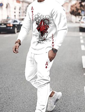 Homens Moletom Conjunto de moletons Branco Gola Redonda Gráfico Pôquer 2 Peças Imprimir Desportos e Ar livre Casual Esportes Impressão 3D Poliéster Roupa de rua Roupa de Esporte Básico Primavera