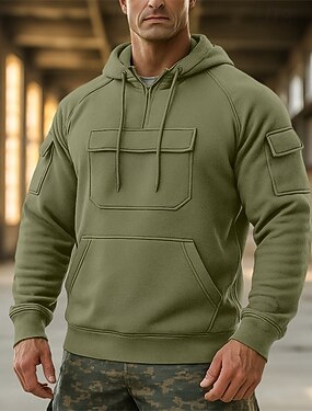 Homens Moletom Quarter Zipper Hoodie Moletom de lã Moletom Tático Preto Branco Verde Tropa Vermelho Vinho Com Capuz Tecido Zíper Bolso multi Desportos e Ar livre Casual Diário Roupa de rua Legal