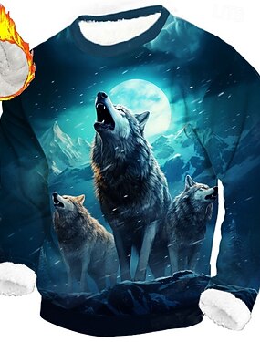 Homens Lobo Impressão 3D Tosão Moletom Diário Casual Fantasia. Gola Redonda Casa Festa Presente Streetwear Azul 1 Azul 2# Marron Impressão 3D Outono Inverno Designer S M L XL XXL XXXL