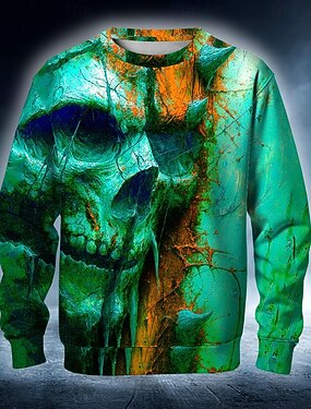 Homens 3D Esqueleto Moletom Punk Festa Góticas Manga Longa Gola Redonda Férias Azul Vermelho Roxo Laranja Verde Crewneck 3D Todas as Estações Designer S M L XL XXL XXXL