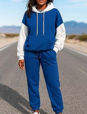 Mulheres Agasalho de 2 peças Moletom Lounge Hoodie Conjuntos de moletom Folgado com bolso Bloco de cor Conjuntos Outono Preto Azul Equitação Vocação Exterior Manga Longa Esporte Roupas Esportivas