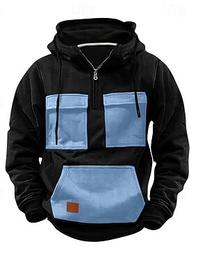 Homens Moletom Quarter Zipper Hoodie Tático Preto Verde Tropa Azul Cinzento Com Capuz Tecido Patchwork Bolsos Desportos e Ar livre Diário Feriado Roupa de rua Legal Casual Primavera & Outono Roupa