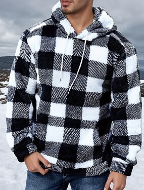 Homens Moletom Moletom de lã Moletom com capuz forrado de lã Preto Com Capuz Tecido Quadriculada Bloco de cor Desportos e Ar livre Casual Diário Roupa de rua Legal Roupa de Esporte Inverno Roupa