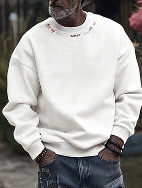 Homens Moletom Branco Cinzento Gola Redonda Tecido Desportos e Ar livre Diário Feriado Poliéster Roupa de rua Básico Casual Primavera Outono Roupa Moletons Moletons