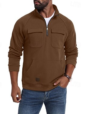 Homens Moletom Polo Moletom Zip Preto Branco Azul Cáqui Cinzento Meio Zíper Tecido Zip Up Bolsos Quarter Zip Desportos e Ar livre Casual Diário Roupa de rua Legal Roupa de Esporte Primavera & Outono
