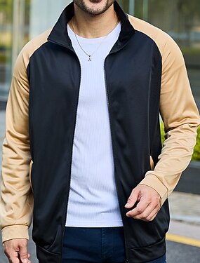 Homens Moletom Moletom com zíper completo Preto Azul Cáqui Colarinho Clerical Tecido Patchwork Bloco de cor Desportos e Ar livre Casual Diário Roupa de rua Legal Roupa de Esporte Primavera & Outono