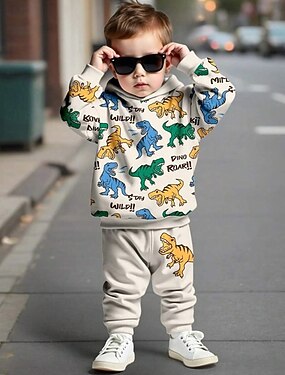 Para Meninos 3D Dinossauro Conjunto de moletom e moletom Roupa Esportiva Fatos de treino Manga Longa Primavera Outono Diário Básico Casual Infantil 4-12 anos Com Capuz Ao ar livre Férias Esportes