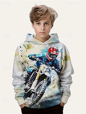 Para Meninos 3D Motocicletas Moletom Manga Longa Primavera Outono Moda Roupa de rua Infantil 4-12 anos Com Capuz Ao ar livre Casual Diário Normal
