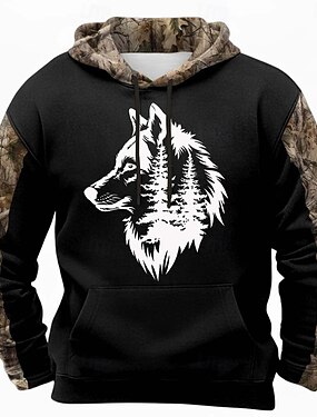 Homens Lobo Moletom Moda Clássico Manga Longa Gola Redonda Ao ar livre Caça Preto Marron cáqui Marrom 2 Com Cordão Outono Inverno Designer S M L XL XXL XXXL