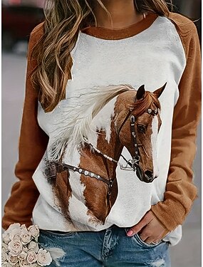 Mulheres Pullover Gráfico Animal Casual Manga Longa Gola Redonda Tops regulares Casual Marron Primavera Outono Inverno
