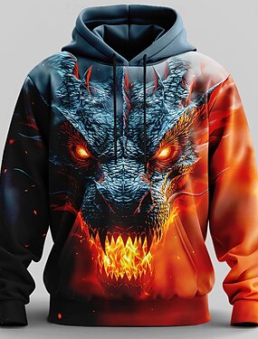 Homens Dragão 3D Moletom Legal Festa Manga Longa Gola Redonda Bandagem Streetwear Azul Roxo Laranja Verde Com Cordão Outono Inverno Designer S M L XL XXL XXXL