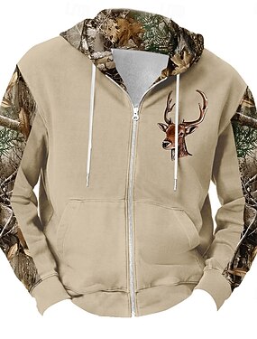 Homens camuflagem Veado Moletons Moda Diário vaqueiro ocidental Manga Longa Com Capuz Férias Caça Preto Marron cáqui Com Cordão Zíper Outono Inverno Designer S M L XL XXL XXXL