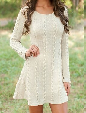 Mulheres Minivestido Vestido casual Moda Clássico Moderno Ao ar livre Férias Feriado Normal Tecido Manga Longa Gola Redonda Branco Vinho Marron Azul Escuro Primavera