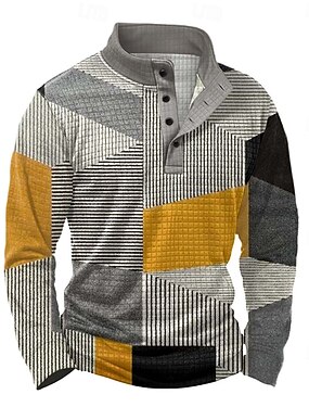 Homens Geométrica Xadrez Waffle Moletom Diário Clássico Casual Colarinho Chinês Ao ar livre Casa Trabalho Presente Azul Azul Céu Amarelo Laranja Botões Outono Inverno Designer S M L XL XXL XXXL