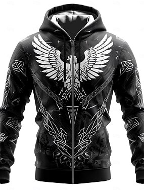 Homens Guerreiro Viking Viking Moletons Moda Legal Diário Manga Longa Com Capuz Streetwear Férias Para Noite Preto Com Cordão Zíper Outono Inverno Designer S M L XL XXL XXXL