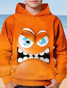 Moletom com capuz estampa 3D para meninos, estampa engraçada com sorriso, manga longa, moda outono inverno, streetwear, crianças de 4 a 12 anos, com capuz, casual, para atividades ao ar livre, ajuste