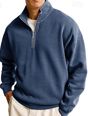 Homens Moletom Moletom com zíper Preto Branco Azul Marinha Cáqui Colarinho Clerical Tecido Quarter Zip Desportos e Ar livre Diário Feriado Poliéster Roupa de rua Básico Casual Primavera Outono Roupa