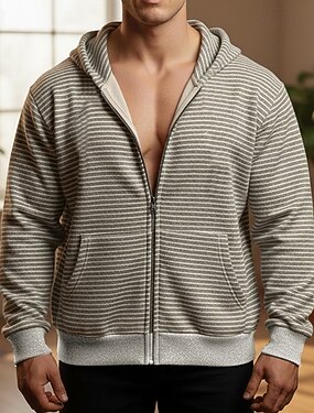 Homens Moletom Full Zip Hoodie Moletons com zíper Adamascado Cinzento Escuro Com Capuz Riscas Patchwork Desportos e Ar livre Diário Feriado Poliéster Roupa de rua Básico Casual Primavera Outono Roupa