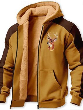 Homens Veado Tosão Moletom Jaqueta Clássico Militar Caça Manga Longa Gola Redonda Ao ar livre Campismo Castanho Claro Marron Cinzento Zip Up Outono Inverno Designer S M L XL 2XL 3XL