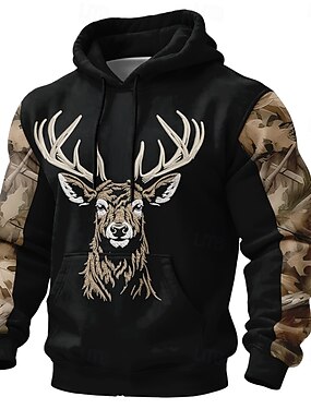 Homens Veado Moletom 3D Caça Manga Longa Com Capuz Ao ar livre Esportes Preto Marron Cinzento Mangas Raglã Outono Inverno Designer S M L XL 2XL 3XL