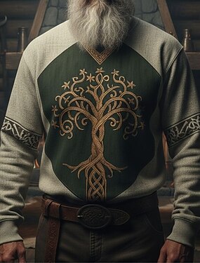 Homens Moletom Azul Cáqui Gola Redonda Árvore da Vida Yggdrasil Nó Celta Imprimir Casual Diário Streetwear Vintage Viking Outono Inverno Roupa Moletons Moletons Manga Longa