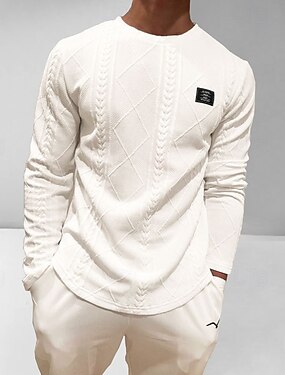 Homens Moletom Preto Branco Rosa Azul Verde Gola Redonda Tecido Jacquard Desportos e Ar livre Diário Feriado Poliéster Roupa de rua Básico Casual Primavera Outono Roupa Moletons Moletons