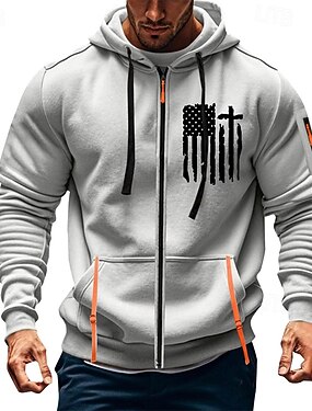 Homens Moletom Full Zip Hoodie Moletom com zíper Azul Preto Cáqui Cinzento Escuro Cinzento Com Capuz American US Flag Zip Up Bolsos Casual Diário Desportos e Ar livre Roupa de rua Designer Básico