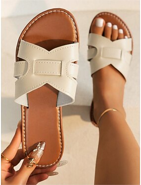 Sandálias rasteiras femininas creme com recortes – sandálias minimalistas e elegantes para viagens de iate de luxo, cruzeiros e férias na praia.