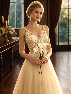 Linha A Longo Vestidos de baile Brilho & Glitter Frente Única Sem Manga Decote V Baile de Formatura Formal Tule V Voltar com Miçangas Apliques