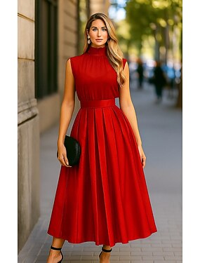 Vestidos de Coquetel A-Line Vestido Elegante Convidada de Casamento Formal Comprimento de Chá Sem Mangas Decote em V Chiffon com Pregas Vestidos em Cor Pura
