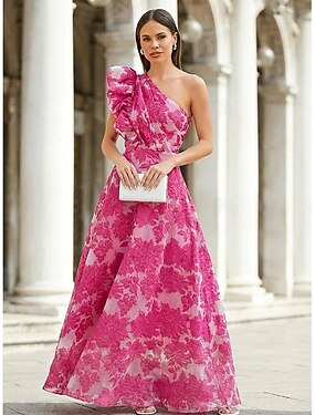 Linha A Longo Vestido formal Vestido de noite Vestido Para Mãe dos Noivos Sem Manga Assimétrico Elegante Esconder Barriga Formal Convidado do casamento Jacquard com Franzido Fru-Fru Drapeado Lateral