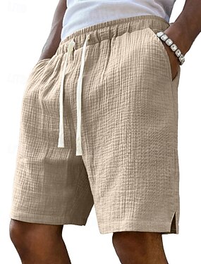 Homens Calção Shorts de linho Shorts de verão Shorts de praia Shorts casuais Com Cordão Cintura elástica Côr Sólida Conforto Respirável Comprimento do joelho Diário Ao ar livre Streetwear Moda Estilo