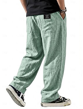 Homens Calças de linho Calças Calça verão Calças largas Com Cordão Cintura elástica Perna reta Tecido Leve Confortável Comprimento total Casual Diário Ao ar livre Moda Roupa de rua Azul Preto Sem