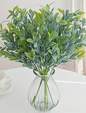 Conjunto de 6 plantas artificiais de dinheiro-em-penca, folhagem falsa, planta de plástico em vaso, planta artificial de interior em estilo europeu para decoração de casa. & mostrar