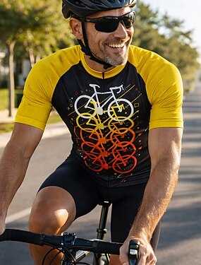 Homens Camisa de ciclismo com shorts Manga Curta Ciclismo de Montanha Ciclismo de Estrada Verão Primavera Outono Preto Amarelo Geométrica Riscas Carta e Número Moto Zíper Frontal Redutor de Suor