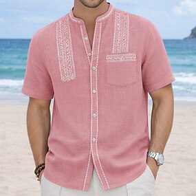 Homens Camisa Social Camisa de linho camisa de verão camisa de praia camisa de botão Camisas para fora da calça Tecido Casual Diário Preto Branco Verde Claro Rosa Manga Longa Aberto para a Lateral