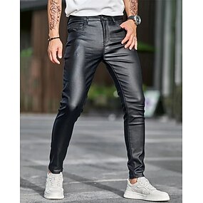 Homens Calças cônicas Calças Lederhosen Botões Bolsos Tecido Conforto Ao ar livre Diário Moda Casual Preto Micro-Elástica