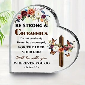 Presente cristão joshua 19 deus escritura placa de acrílico seja forte e corajoso presente de incentivo para menino menina cruz flor borboleta mesa coração placa presente religioso para mulheres