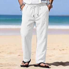 Homens Calças de linho Calças Calça verão Calças largas Calças de praia Com Cordão Cintura elástica Perna reta Tecido Conforto Respirável Comprimento total Ao ar livre Feriado Praia Férias Moda
