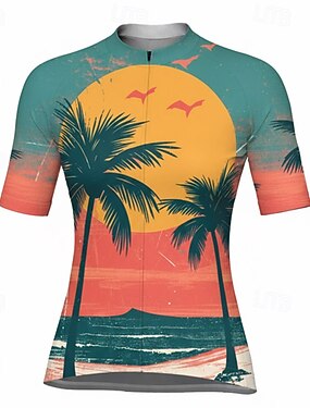 Mulheres Camisa para Ciclismo Flores tropicais Palmeira Manga Curta Moto Camisa / Roupas Para Esporte Blusas com 3 bolsos traseiros Secagem Rápida Pavio Humido Respirável Esportes Verde Roupa