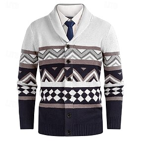Homens Suéter Sueter Cardigan Suéter Fair Isle Estriado Tricotar Tops regulares Tricotado Geométrica Xale Férias Moda Casual Roupa Diária Roupa Primavera & Outono Branco Amarelo S M L