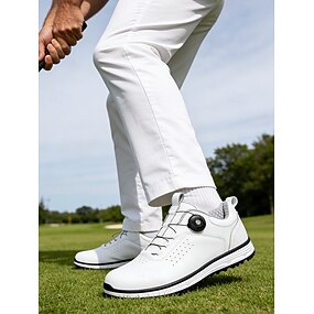Sapatos de golfe masculinos com sistema de ajuste Boa – couro sintético premium, design elegante na cor branca para golfe e esportes ao ar livre.