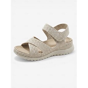 Sandálias femininas confortáveis com suporte para o arco do pé em formato de amêndoa – sandálias esportivas de malha respirável com sola acolchoada. &Alça de velcro ajustável para atividades ao ar