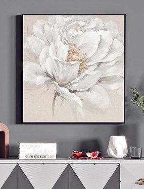Pintura a óleo original de flores brancas feita à mão sobre tela, pintura floral abstrata para decoração de casa com moldura esticada/sem moldura interna