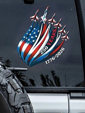 Adesivo comemorativo do 250º aniversário dos EUA para janela de carro, adesivos patrióticos americanos do semiquincentenário (1776-2026), adesivos da bandeira da independência dos EUA, adesivos de vinil duráveis para janela de carro.