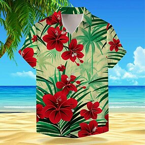 Homens Estampa floral Flores tropicais Camisa Social Camisa havaiana camisa de botão Manga Curta Havaiana Recorrer Férias Feriado Roupa de Praia Verão Aberto para a Lateral Impressão 3D camisas de
