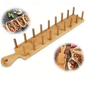 Suporte de madeira em formato de torre para bandejas, bandeja de bambu para burrito mexicano, comporta 8 tortilhas (crocantes ou macias), também serve para tortilhas de milho, ideal para restaurantes